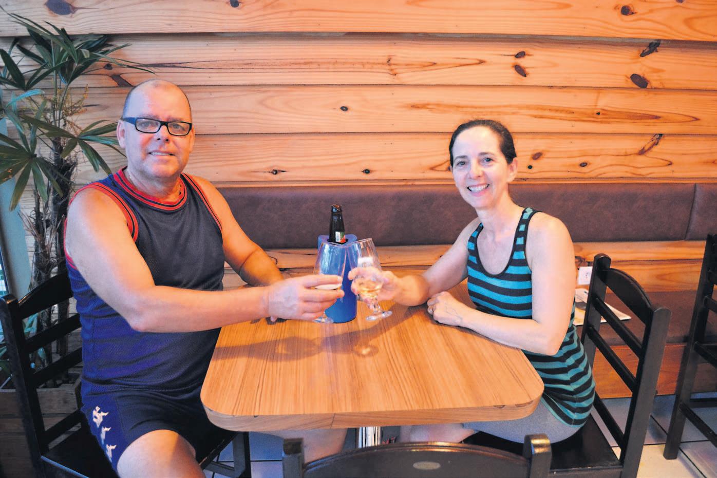 Garopaba e suas praias são o destino preferido de muitos lajeadenses. Alguns até fixaram residência e abriram negócios por lá. Exemplo disso é a já famosa hamburgueria Gunamadê, de Taís Gregory e João Caetano Puerari (foto 1). O restaurante, chamado de “Guna” pelos clientes, alcançou o terceiro lugar no ranking do site TripAdvisor como melhor da região. É superindicado por blogs gastronômicos e por conterrâneos do casal, como Ana Paula Zago e Maurício Kunzler, que estiveram por lá nesse Carnaval (foto 2).