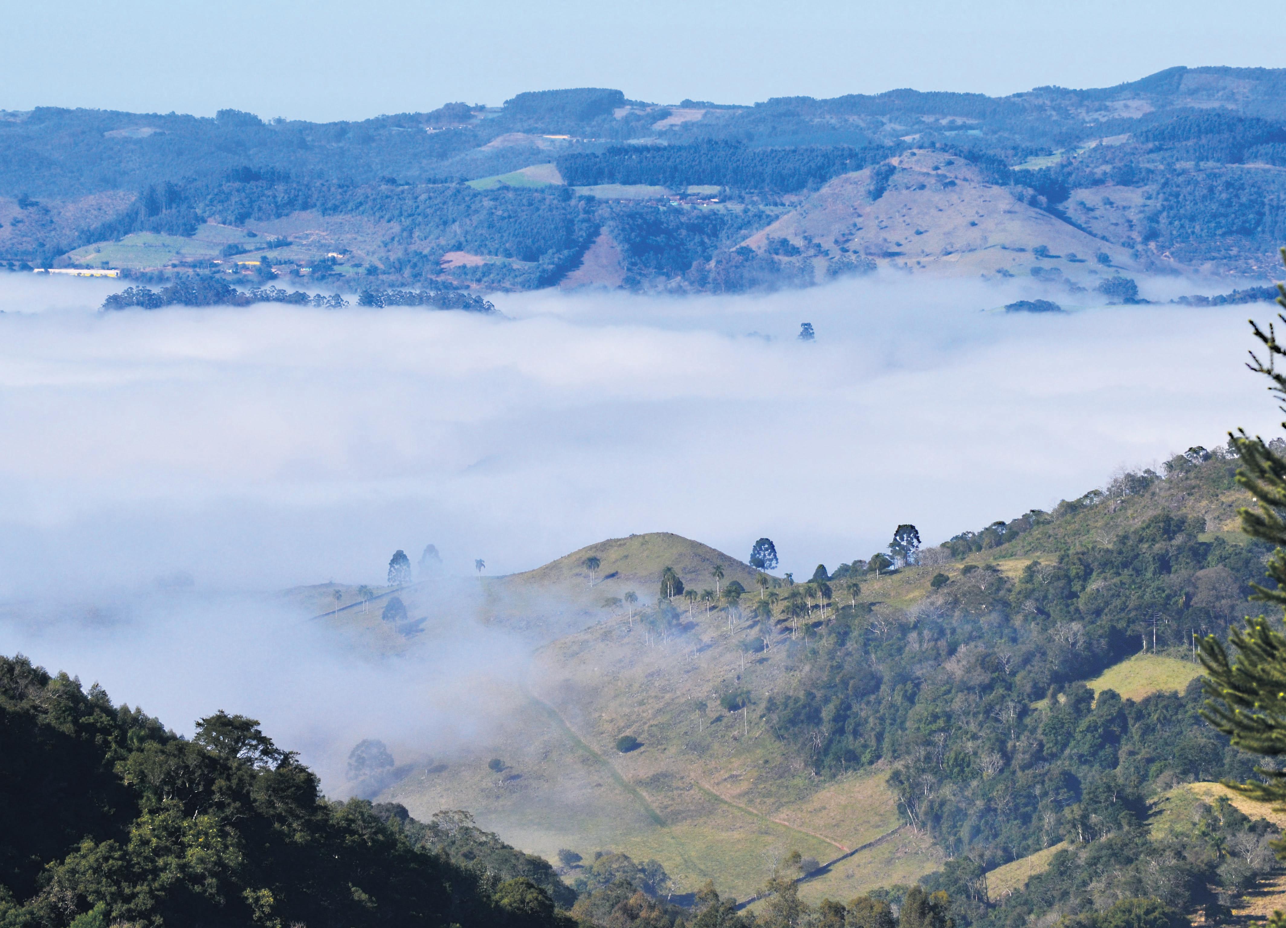 m lugar colonizado por italianos mostra toda sua exuberância nos dias frios, quando a cerração encobre as planícies. Em Pouso Novo, boas opções de turismo ecológico e religioso atraem os amantes das belezas naturais. As grutas, cascatas, trilhas ecológicas e prédios com admiráveis arquiteturas complementam o cenário. Assim como faziam os tropeiros no passado, o local é ótimo para descansar em meio à natureza e apreciar o Vale de seus mirantes. Para conhecer todo o potencial desse pequeno município, não é preciso mais de um dia. Conforme o Guia Vem, do jornal A Hora, nas manhãs de inverno, se for bem cedo, é possível avistar as planícies encobertas por nuvens formadas pela neblina na BR-386. Um dos principais pontos turísticos está bem sinalizado. Para quem vai de Lajeado, pela BR, no trevo do principal acesso ao cen-