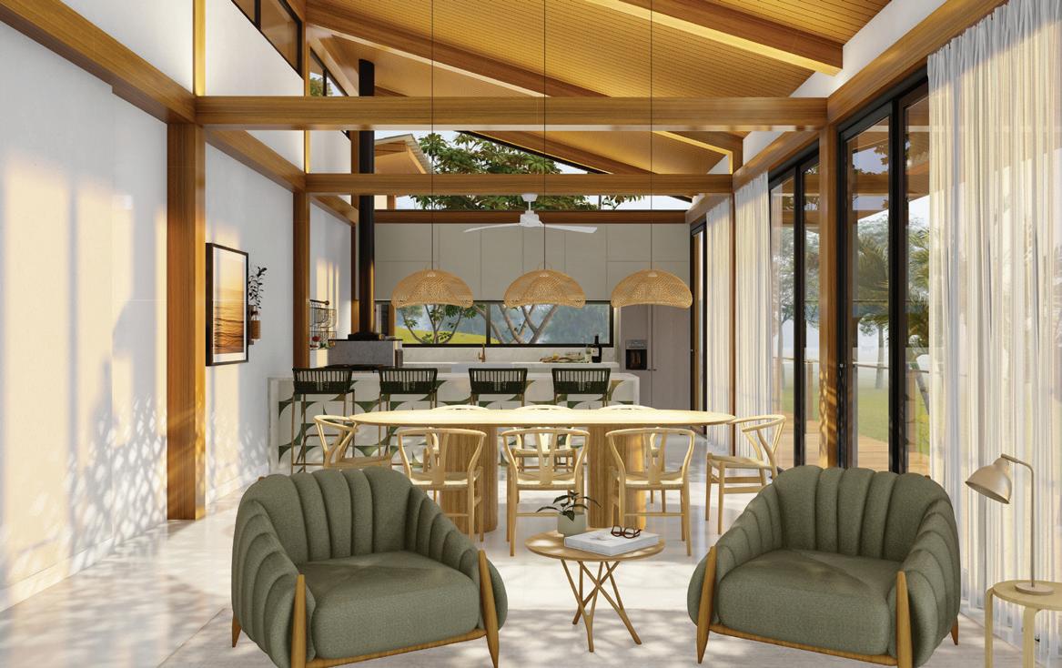 do, típico de casas coloniais, e grandes áreas de aberturas que possibilitam a entrada de luz natural são características do projeto.