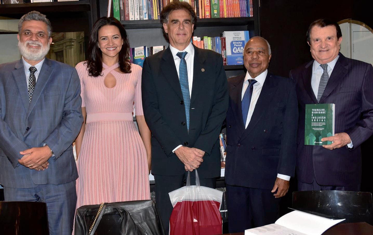 lançamento do livro “TRABALHO, DIGNIDADE E INCLUSÃO SOCIAL’’ , na Livraria Travessa, foi um dos mais concorridos da temporada. Trata-se de estudos em homenagem ao Ministro José Luciano de Castilho Pereira. Na foto, durante o evento as ilustres presenças do ministro, presidente do TST. Lélio Bentes (autor) , a Professora Priscila Lauande ( autora) , Ministros do TST Luiz Philippe , o ministro Carlos Alberto de Paula( autor) e o poderoso advogado Estenio Campelo.