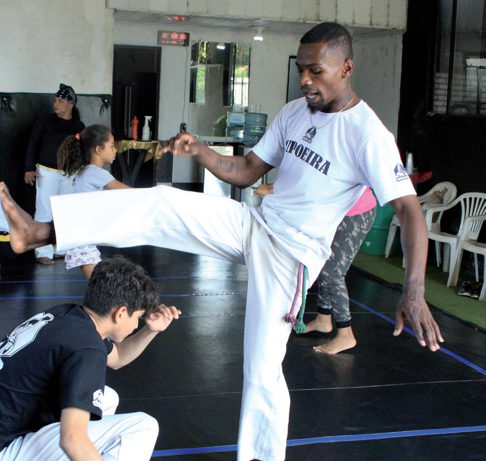 dos instrumentos; ensino de canções; e ensino para domínio dos movimentos e exercícios da capoeira. São disponibilizadas 25 vagas para as oficinas gratuitas. As aulas serão ministradas às segundas, quartas e sábados pelo Mestrando Taleta, pelo Contramestre Fininho e pela Professora Kekel. Serão 3 turmas simultâneas: feminina, masculina e infantil. O espaço Arena Lutas realiza trabalhos sociais, ajudando a comunidade desde 2018. Entretanto, seu fundador trabalha com a cultu-