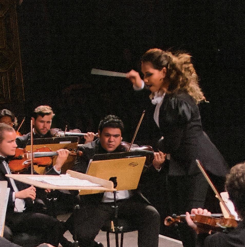 “Teremos a maestra e compositora Cibelle J. Donza e a harpista Cristina Carvalho atuando como solista”, anuncia o regente Cláudio Cohen, em referência à primeira apresentação, que acontece no dia 7/3. Cibelle, cujo instrumento de formação é o violão clássico, faz sua participação de batuta na mão, comandando a Sinfônica durante o concerto, e também conduzindo a estreia de sua obra Da Terra, composta especial-