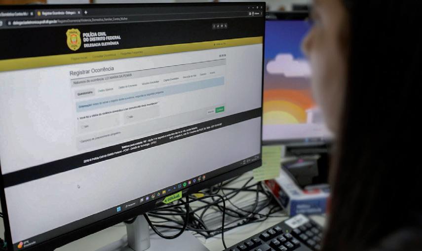 O número de registros de Maria da Penha Online, instrumento disponível na Delegacia Eletrônica da Polícia Civil do Distrito Federal (PCDF) para relatar violência doméstica e familiar, cresceu 34% no comparativo do primeiro semestre deste ano com o mesmo período do ano passado. O aumento foi de 465 ocorrências nos seis primeiros meses de 2022 para 622 de janeiro a junho deste ano. “A Delegacia Eletrônica encontrase em terceiro lugar na quantidade de registros de ocorrências não flagranciais relacionadas à Lei Maria da Penha, levando em