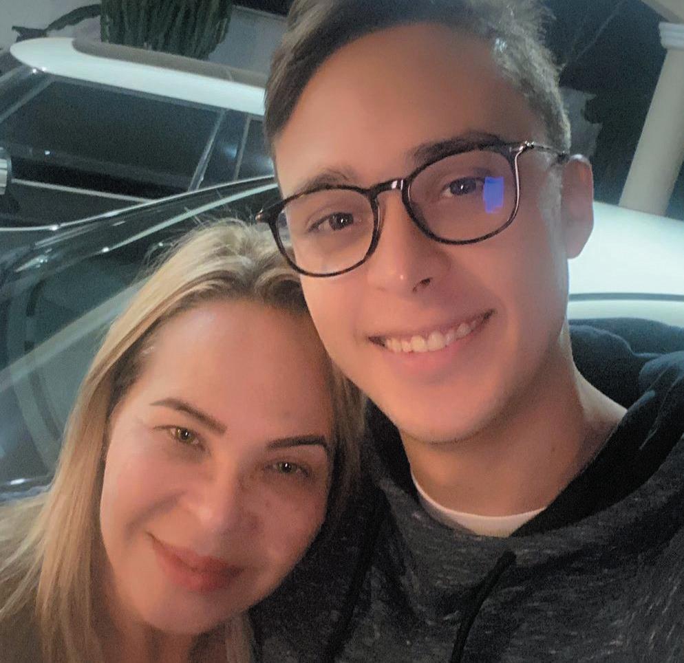 A advogada Shirlene Rodopoulos matando a saudade do filho, do qual tem muito orgulho.