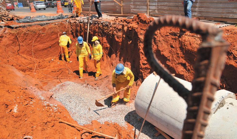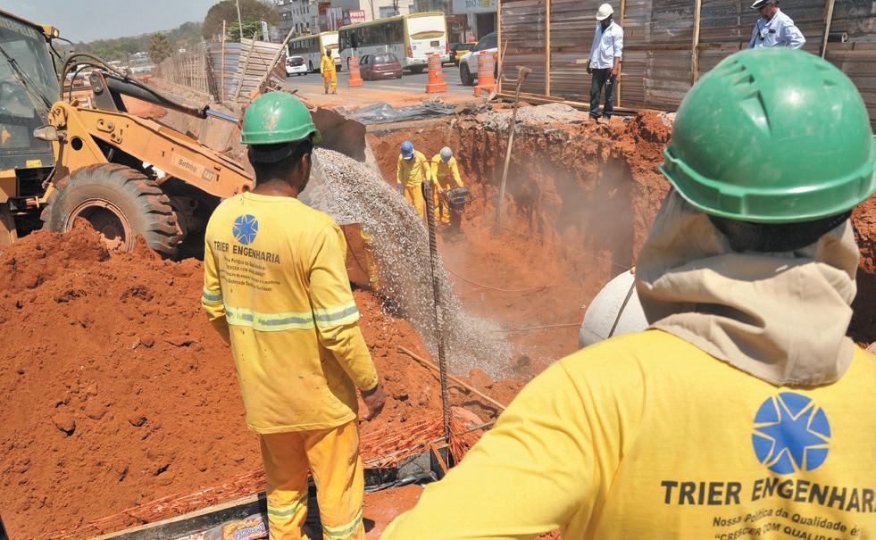 fundidade e volume de pouco mais de 4.600 m³. Um dissipador será construído para evitar que a água captada pelo sistema de drenagem desemboque com muita força no reservatório. Na saída do tanque, além de passar por um segundo dissipador, a água percorre tubulação de menor calibre até desaguar no Cortado. As marginais sul e norte do Túnel de Taguatinga vão ladear o boulevard que ocupará a parte superior da passagem subterrânea. Com duas faixas de rolamento em cada uma, as pistas correm paralelas ao corredor exclusivo para ônibus. No lado sul, o trecho que liga a Avenida Comercial à Estrada Parque Taguatinga (EPTG), com 520 m de extensão, foi liberado para uso no dia 1º de outubro.