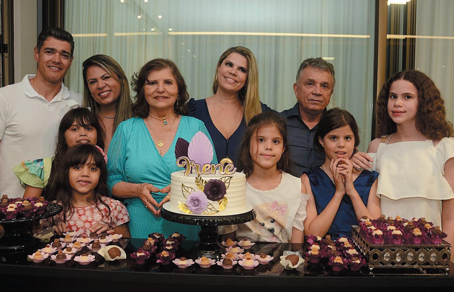Irene Maia comemorou seu aniversário reunindo a família e as pessoas que lhe querem bem em seu apartamento. Com o carinho, as delícias e as gentilezas de sempre. Na foto, na hora do parabéns, a aniversariante com seus familiares.