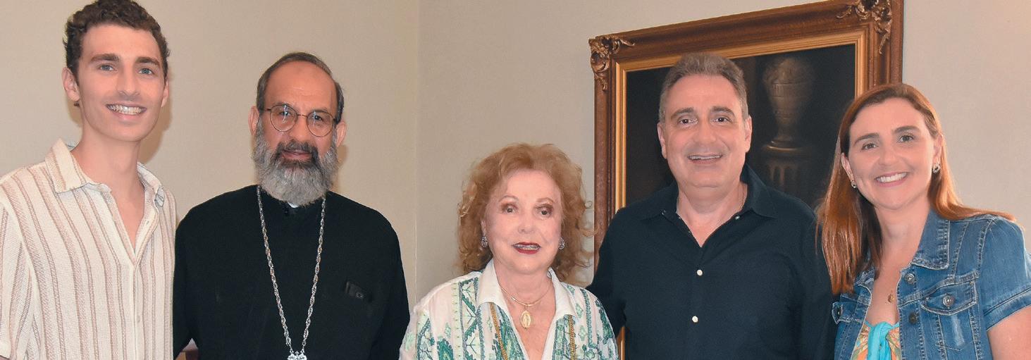 A anfitriã ladeada pelo Padre Arquimandrita Agápios Al Sayegh , o neto Aluizinho, que estuda no Canadá, e os filhos Solon e Valeska.
