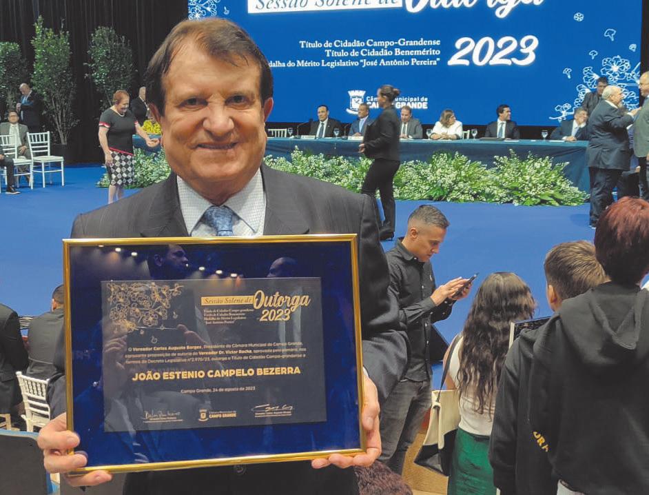 Mais uma conquista para o renomado advogado Estenio Campelo. Ele acaba de receber o título de cidadão campo-grandense pela Câmara de Vereadores, em cerimônia pra lá de prestigiada, com a presença de autoridades, políticos e amigos, no auditório do Palácio Municipal. Estenio, cearense de nascimento e brasiliense por direito e pela amor que tem a capital, é também um dos mais conhecidos filantropos do país, com trabalho assistencial e parcerias em vários estados. O evento fez parte dos festejos dos 124 anos da capital do Mato Grosso do Sul e a proposta do título foi por indicação do vereador Victor Rocha, médico que idealizou a Casa Rosa, um espaço dedicado a cuidar de saúde da mulher, prevenindo e tratando de doenças como o câncer de mama. Emocionado, Dr. Estenio agradeceu e falou dos laços que tem com a capital do Mato Grosso do Sul, onde tem parentes e muitos amigos. Parabéns da coluna.
