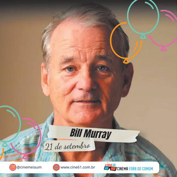 Conhecido por suas comédias, o ator Bill Murray faz aniversário hoje. Se você quiser conhecer outros nomes da sétima arte que também assopram velinhas acompanhe o instagram do site Cine61 - Cinema Fora do Comum. Diariamente é postado o aniversariante do dia, num projeto que busca saciar a curiosidade das pessoas, além de homenagear artistas talentosos. Além de atrizes e atores, diretores também são lembrados nas publicações do Instagram. Siga para acompanhar: @cinemeiaum.