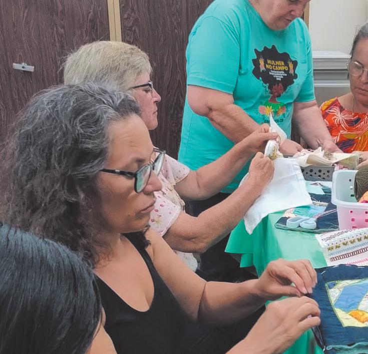 Mulheres de áreas rurais do Gama participaram de uma oficina de bordado e patchwork promovida pelo Olhares do Campo, da Emater-DF. O objetivo foi aprimorar as habilidades do grupo, que existe há dez anos, e incentivar a produção de artesanatos e manualidades. As atividades foram coordenadas pela extensionista rural Zaida Regina Almeida da Silva, que também é turismóloga. “Já trabalhamos com fibras naturais, costura, patch aplique – que são apliques em panos de prato -, entre outras técnicas, mas elas se identificaram mesmo foi com o bordado e o patchwork”, explicou a extensionista Carmem