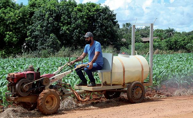 Movido pela vontade de diminuir a penosidade do trabalho agrícola, Lucas da Natividade Ribeiro, 33 anos, começou a criar projetos de implementos há dez anos. Ao longo desse tempo, desenvolveu um pulverizador para ser acoplado num mi-