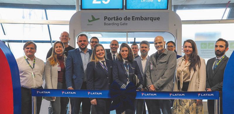 Para os viajantes que passam pelo Aeroporto Internacional de Brasília – Presidente Juscelino Kubitschek, embarcar para Santiago sem escalas volta a ser uma realidade. No sábado (1º), a companhia aérea Latam promoveu a cerimônia de retomada do voo ligando a capital federal à capital chilena sem conexões. Uma viagem que antes durava aproximadamente 8h, com escalas muitas vezes em Guarulhos, Florianópolis ou demais cidades, volta a ser feita de forma direta em menos de 5h, uma redu-
