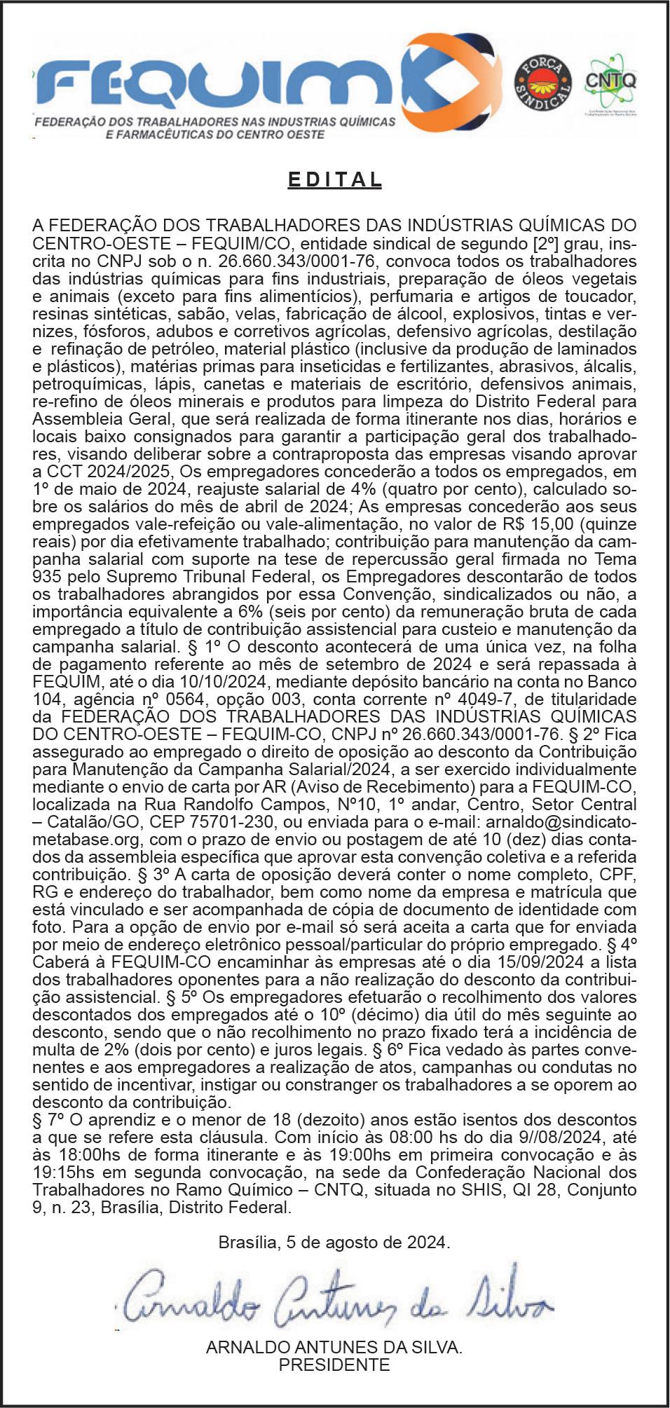07 DE AGOSTO DE 2024 QUARTA-FEIRA