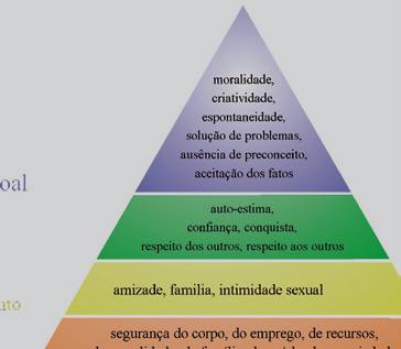 Assim acontece com muitos profissionais de sucesso. Olhando a pirâmide de Maslow, seja em qual patamar você estiver, necessidade de segurança (segurança da família, do corpo e da propriedade), necessidade social (amor, amizade, família e comunidade), necessidade de estima (reconhecimento, status e autoestima) e necessidades que estão no topo da pirâmide (criatividade, talento e desenvolvimento pessoal), sua atuação profissional deve ser pautada na satisfação, uma a uma, de suas necessidades da base até o topo da pirâmide.