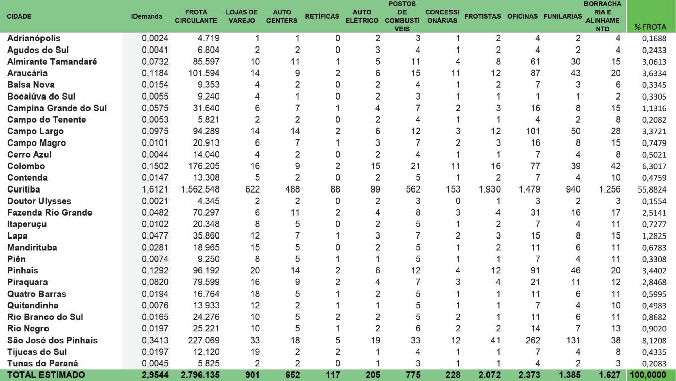 Em Geomarketing Automotivo, por Sérgio Duque, a Região Metropolitana de Curitiba: a retomada para o crescimento sustentável. Conforme ele, estimase que o PIB na RMC em 2019 deve ter ficado próximo de R$ 200 bilhões, sinalizando um ciclo de crescimento importante e responsável por 40% de toda a produção do estado do Paraná, liderada pelos municípios de Curitiba e São José dos Pinhais, entre 29 da região.