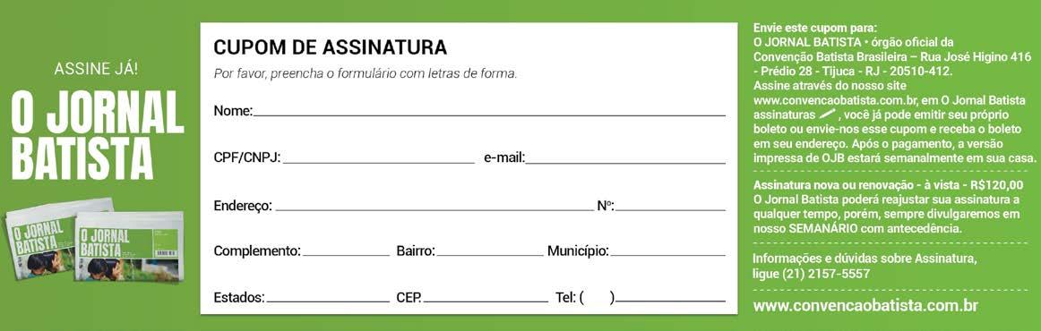 Anúncios e assinaturas: jornalbatista@batistas.com