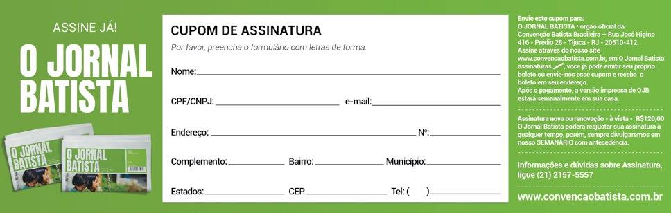 Anúncios e assinaturas: jornalbatista@batistas.com Colaborações: decom@batistas.com