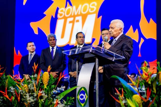 Quero, em nome dos Batistas brasileiros que aqui se reúnem, representando milhares de Igrejas e de convenções e associações de Igrejas e de pastores, quero registrar a nossa gratidão ao governador Jerônimo Rodrigues, ao prefeito Bruno Reis, à hospitalidade dos baianos à nossa gente, ao nosso povo. Hospitalidade que lembra aquela de 1822, quando chegaram os missionários aqui e iniciaram a obra Batista, fundando a primeira igreja nesse estado. Como nós cremos na liberdade, na liberdade de escolha, a igreja hoje tem um outro nome, mas lá nasceu a obra Batista do estado da Bahia e no Brasil.