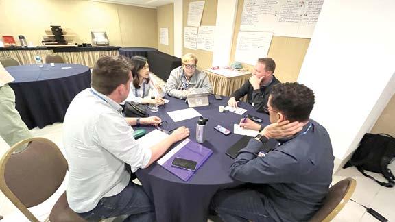 Em seguida, Thiago Faria e Ruy Oliveira (JMM) facilitaram uma sessão para o desenvolvimento de compromissos e identificação de oportunidades conjuntas. A partir dessas conversas, os participantes foram organizados em grupos de planejamento colaborativo, com acompanhamento de Steve Sanderson (BMS), que orientou a elaboração de propostas práticas e cooperativas. Como resultado, foram consolidados quatro compromissos estratégicos que refletem a convergência de visão entre as agências participantes: