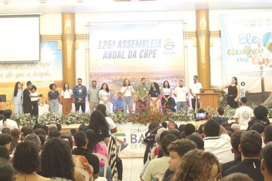 compromisso real com a missão de Cristo. “Quando a gente participa ativamente, entende melhor os desafios da Igreja hoje e pode contribuir com ideias e perspectivas novas”, afirmou. Durante o culto, foi montado um coro composto por intérpretes da Língua Brasileira de Sinais (Libras) para louvar o hino 193 do HCC: Maravilhosa Graça. Além disso, a poetisa e missionária Edu Martin, da PIB Caruaru, esteve na noite declamando versos sobre a força da juventude batista como um todo.