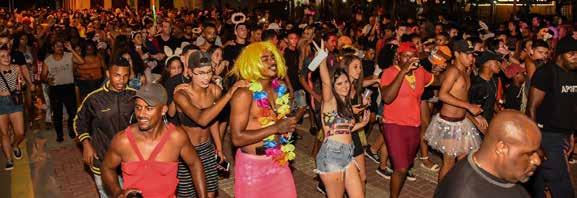 marcada pelo desfile da escola de samba Gente Arteira em Cena e show com Maycon Melo e Banda. No sábado, 18, a folia começou à tarde com matinê da banda Sete Bocas, e também desfile dos blocos “Vira copos”, “Feliz idade” e “Flacarmo”. À noite, os foliões curtiram shows com DJ Calibre e Banda Prakatum. No terceiro dia de festa, 19, a programação contou com matinê e desfile dos blocos “Bloco dos Palhaços", "Bloco de Paraisópolis” e “Bloco do Botafogo”. O domingo foi encerrado com apresentações