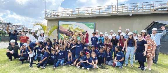 preservação do meio ambiente. O grupo também visitou o Viveiro Escola, espaço implantado na unidade em 2014 para o cultivo de mudas nativas da Mata Atlântica. No local, são mantidas diversas espécies de plantas usadas para recuperação de áreas degradadas e criação de corredores verdes na cidade. As mudas são irrigadas com água de reúso, ou seja, com o efluente que passou pelo processo de tratamento e está em condições ideais para ser devolvido ao meio ambiente sem risco de poluição. Os alunos realizaram o plantio de dez