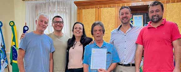 Ao lado do prefeito e vereadores, o artista plástico Felga de Moraes recebendo a homenagem em Nova Friburgo