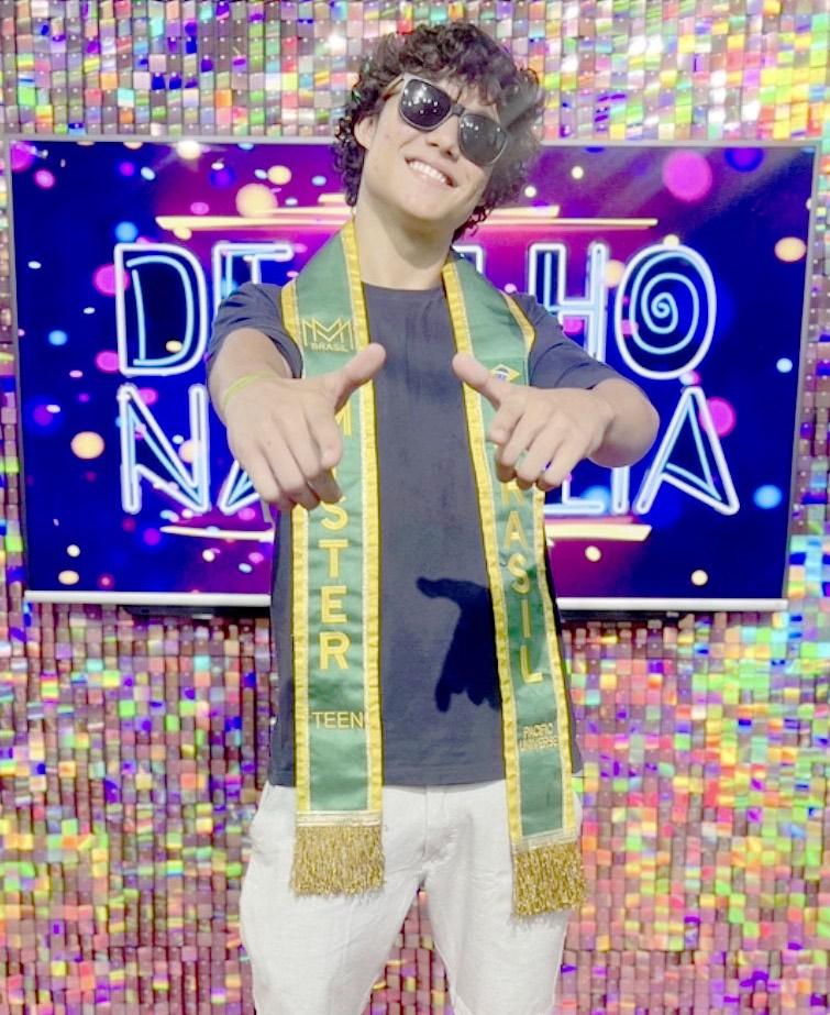 O Mister Brasil Teen P. Universe, Lucas Silvestre, prestigiando o De Olho na Folia.