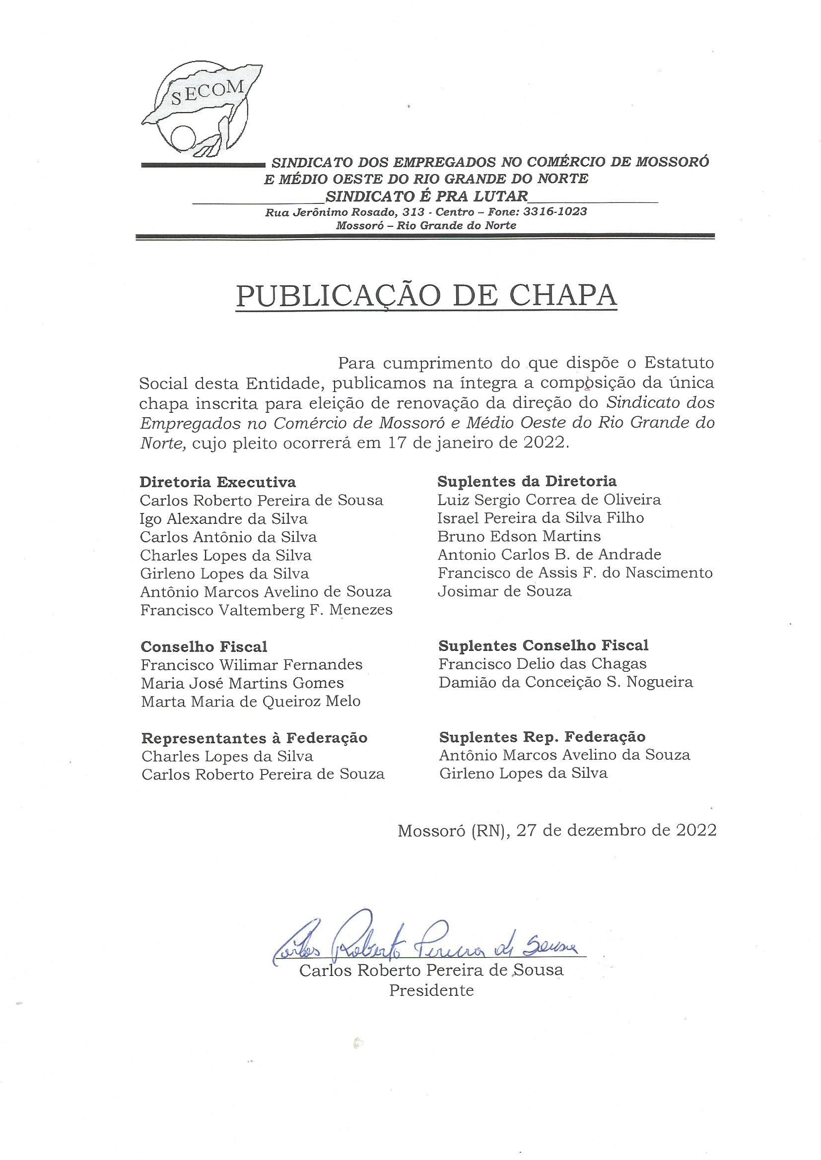 cado emitido pelo clube mossoroense na tarde desta terça, 27. Confira: