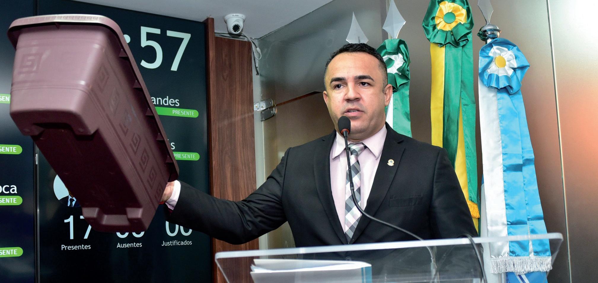 Vereador Paulo Igo mostra o vaso que a Prefeitura comprou a unidade por R$ 790