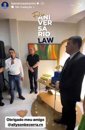 É um amigo e braço forte de todos os nossos passos e projetos”ALLYSON BEZERRA, Prefeito elogiando Lawrence Amorim, presidente da Câmara de Mossoró