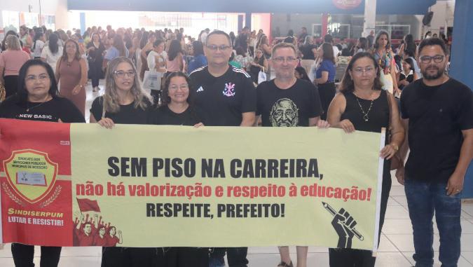 Os professores reclamam uma defasagem no reajuste do piso salarial do Magistério de 27%, que correspondem aos anos de 2023, 2025 e 2026. Como o prefeito