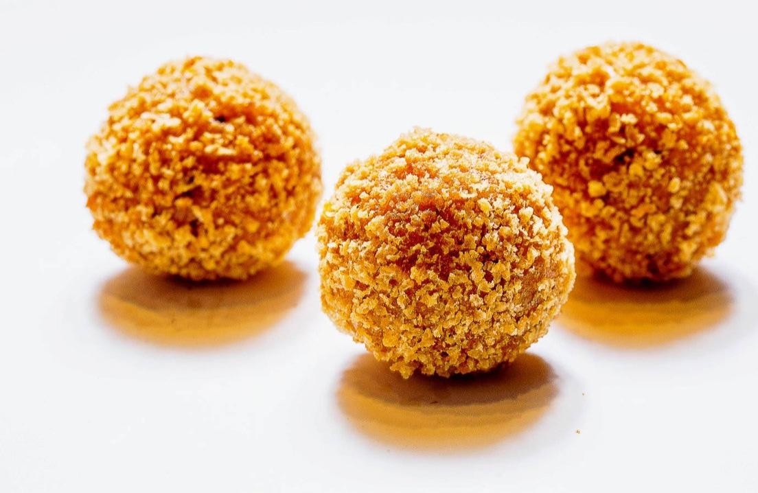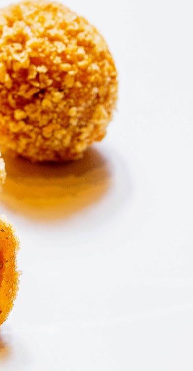 “A partir dessa farinha, eu crio outras preparações. O bolinho de sardinha é uma delas. Quando eu falo bolinho de sardinha, não é um bolinho recheado com sardinha, é saborizado com a farinha de sardi nha, e recheado com diferentes tipos de queijo muçarela”, adianta.