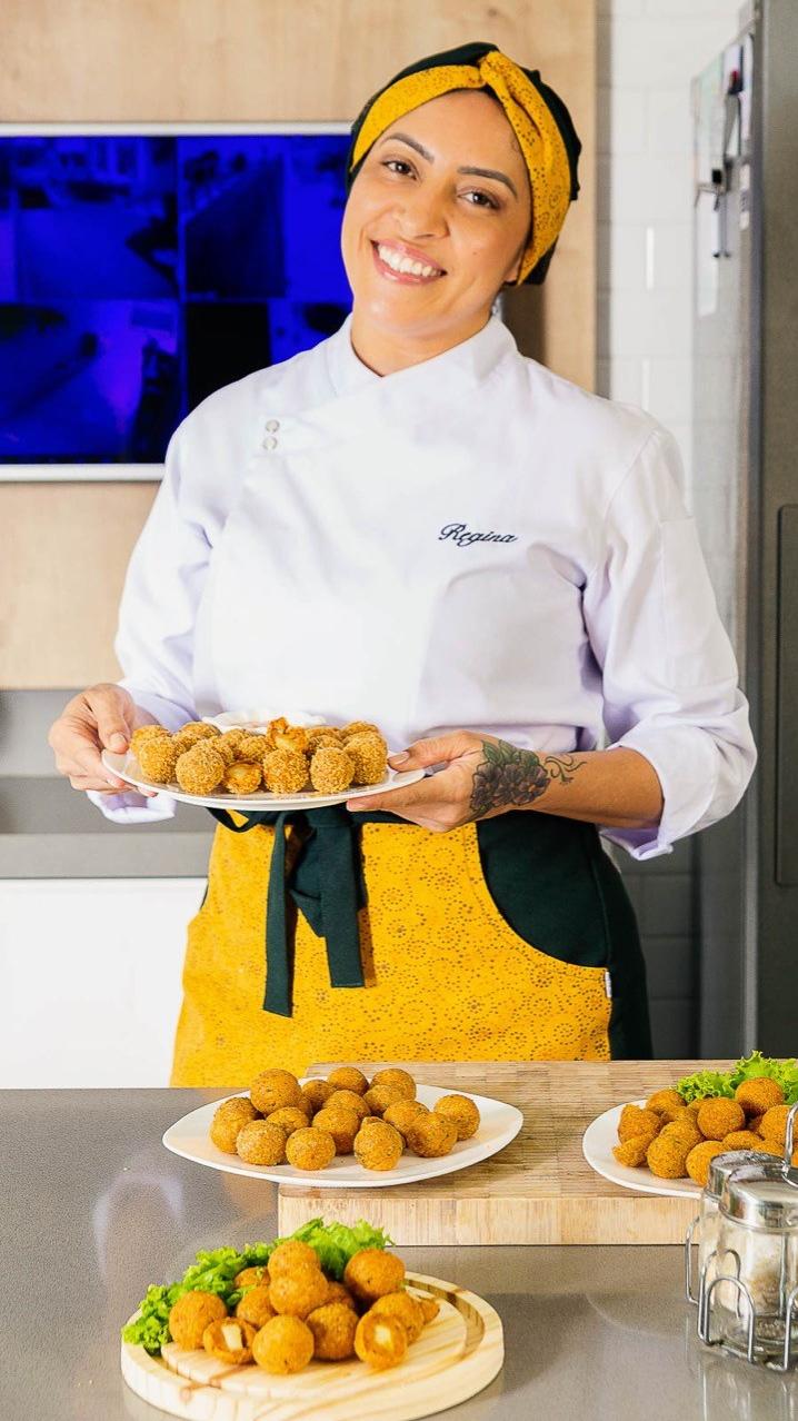 >> Regina o liveira fala da criação do produto inovador, criado a partir de seu projeto de conclusão do curso de cozinheiro no Senac Barreira Roxa.