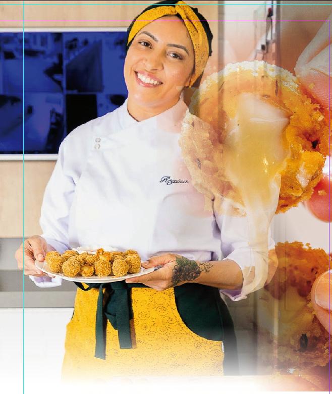 Regina Oliveira fala da criação da Farinha de Sardinha, produto inovador, criado a partir de seu projeto de conclusão do curso de cozinheiro no Senac Barreira Roxa. Página 8