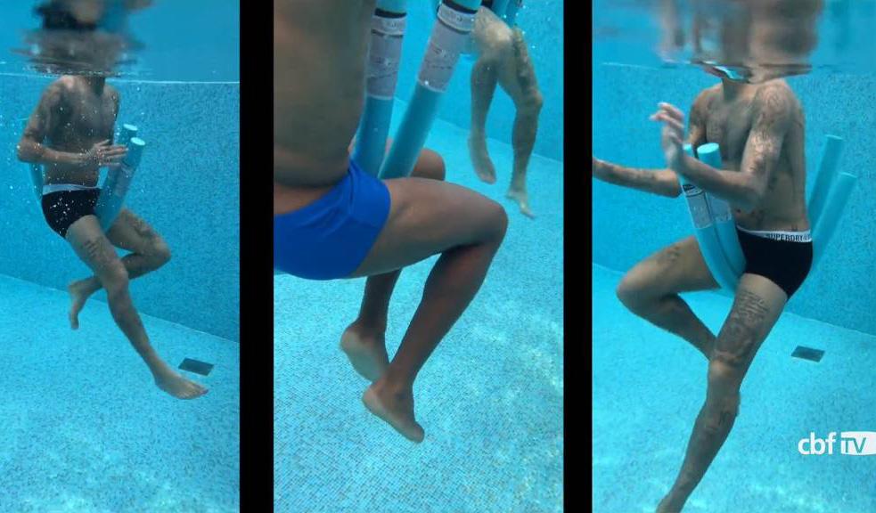Vídeo da CBF mostra imagens de Neymar e de Alex Sandro exercitando-se na piscina, em Doha
