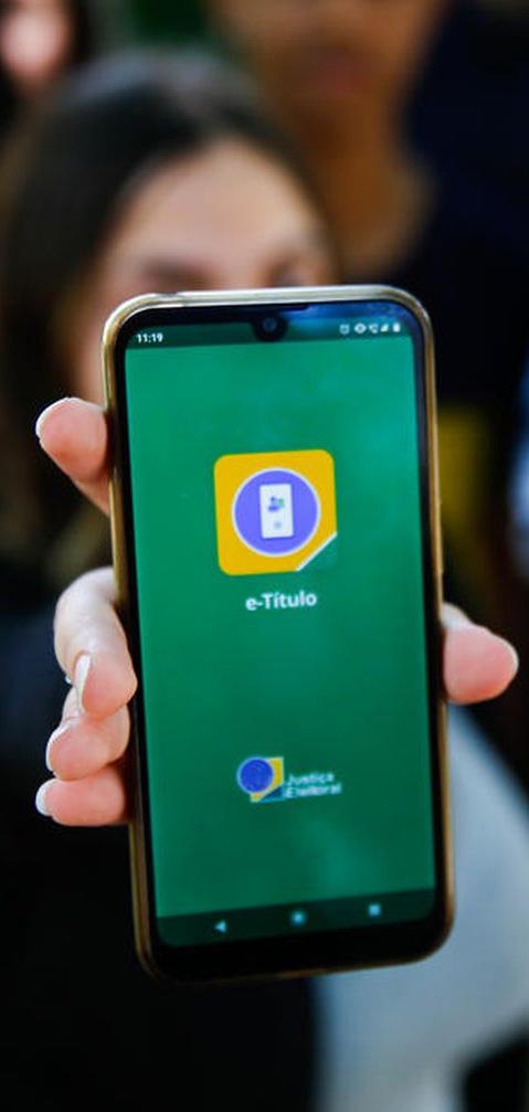 Implementado em 2018, o e-Título pode ser baixado nos celula res para serem apresen tados no momento da votação, caso esteja atu alizado e com foto. Ele pode ser utilizado tam bém para consultas so bre local de votação, bem como para justifi car ausência às urnas, emitir certidão de qui tação eleitoral e nada consta criminal, entre outros serviços.