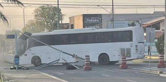 semáforo foi derrubado por ônibus, no nova Betânia, também na manhã desta quinta, em Mossoró