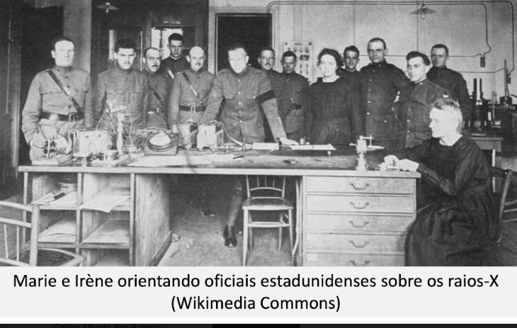 Assim como Marie, que aos 17 anos participou de um movimento de resistência à dominação russa na Polônia, Irène, também aos 17 anos, foi para o campo de batalha da Primeira Guerra Mundial para colaborar com sua mãe no serviço de radiologia, ela mesma conduzindo uma das “pequenas Curie”, caminhonetas transformadas em unidade volante de raios-X.