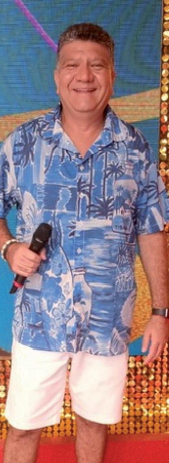 O cantor Manim Vaqueiro usando M. Morena Beachwear durante suas aparições no Carnaval 2026. Acertou demais!