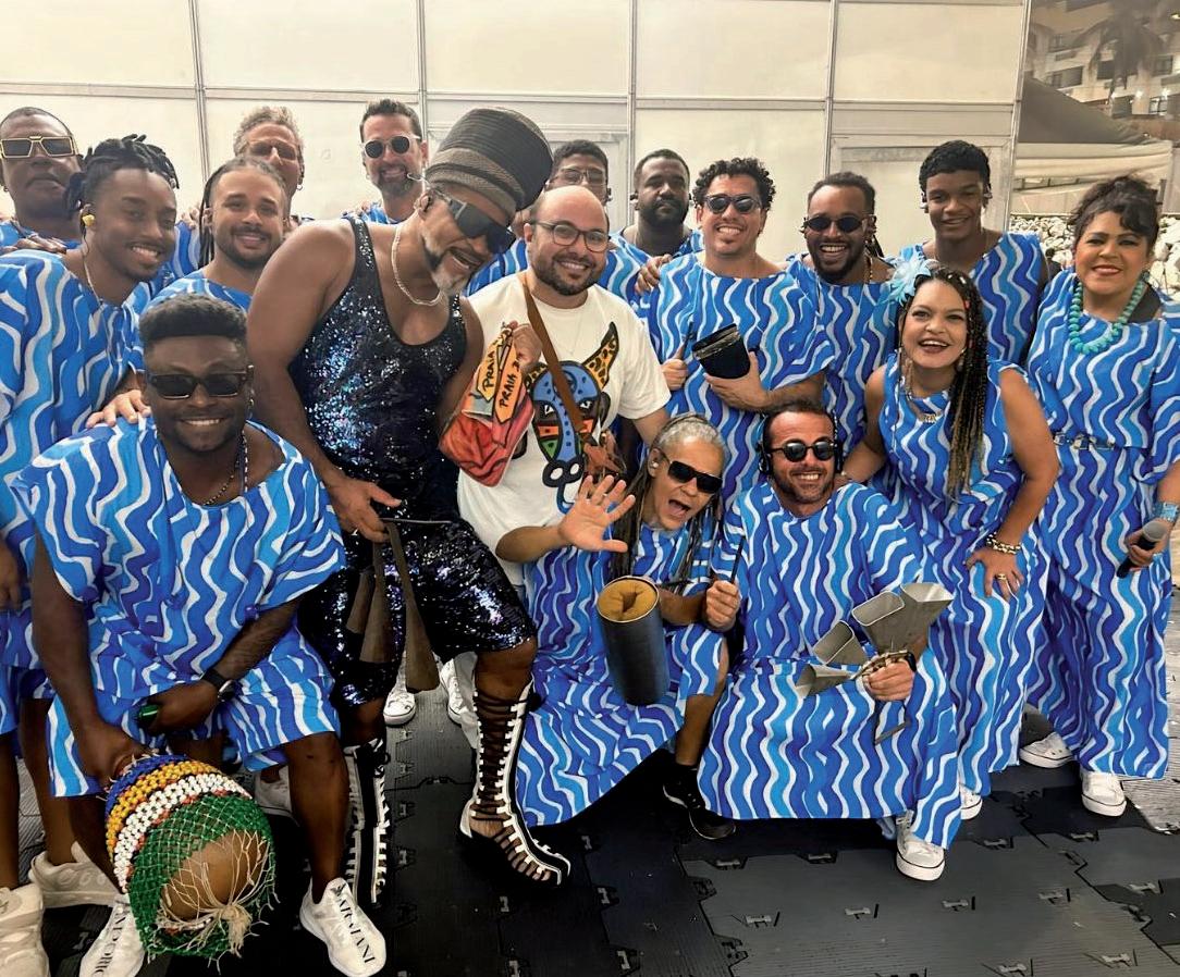 George Azevedo posando com Carlinhos Brown e sua banda no Carnaval de Natal.