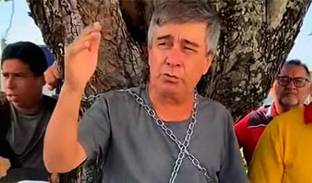 O vereador Robério Paulino (Psol) radicalizou para impedir que a Prefeitura de Natal remova plantas no canteiro de uma avenida no bairro Lagoa Nova. Ele se acorrentou a uma árvore para conter a ação contra o meio ambiente. E avisou: “Vamos ficar aqui. Se quiserem derrubar as árvores, vão ter que nos serrar no meio.”