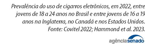 Tanto os senadores que apoiam a regulamentação do cigarro eletrônico — e a consequente liberação do seu consumo — quanto os que são contra a proposta reiteram sua preocupação com o consumo precoce do tabaco. E entidades como a Organização Mundial da Saúde (OMS) alertam para o risco de que os vapes induzam os jovens a se iniciar no tabagismo cada vez mais cedo.