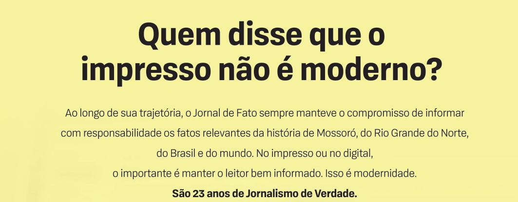 Dep. de Assinaturas: Alvanir Carlos www.defa to.com E-MAIL : re da cao@defa to.com TWITTER : @jornaldefato_rn REDAÇÃO E OFICINAS: SEDE Avenida Rio Branco, 2203, Centro, Mossoró-RN – CEP: 59.063-160