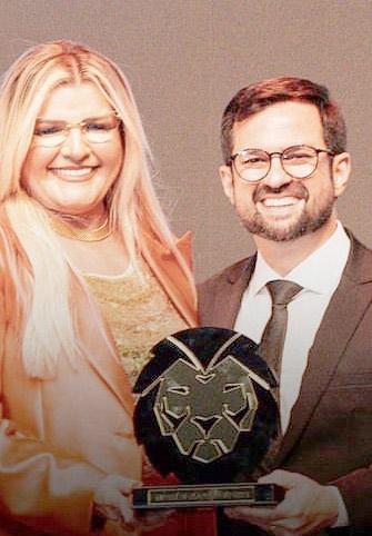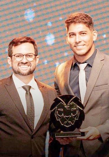 Arikeme Ângelo, gerente do Hotel Thermas, recebendo homenagem pela melhor Empresa - turismo e viagens.