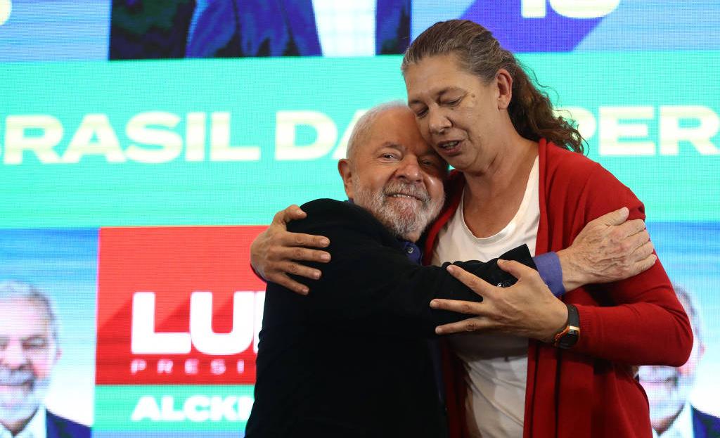 Ana m oser abraçada com Lula em encontro com o setor esportivo durante a campanha