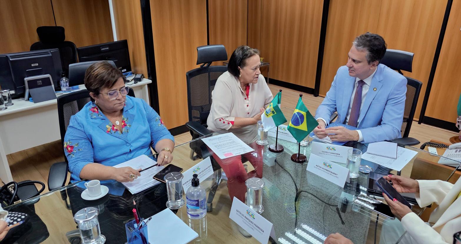 Secretária Socorro Batista, governadora Fátima Bezerra e o ministro Camilo Santana em audiencia no Ministério da Educação
