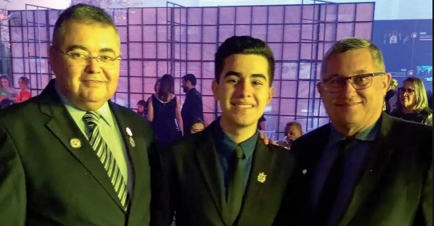 DeMolay Bernardo Augusto ladeado por autoridades Maçônicas em Mossoró. Ele recebeu a honraria - o Prêmio Chevalier. A Coluna LB parabeniza