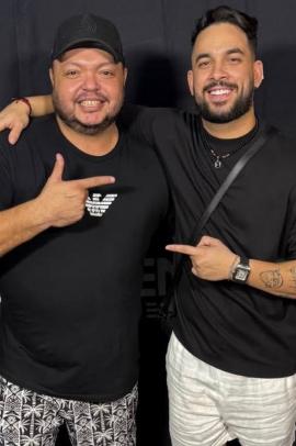 O empresário Anderson Buxexa comemorando o sucesso do “Verão Praia Tibau” ao lado do cantor Henry Freitas.