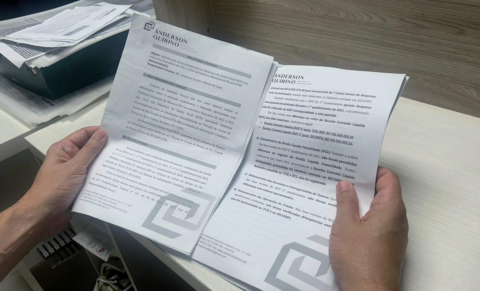 latório técnico apresentado pela consultoria Anderson Quirino, sediada em Natal.